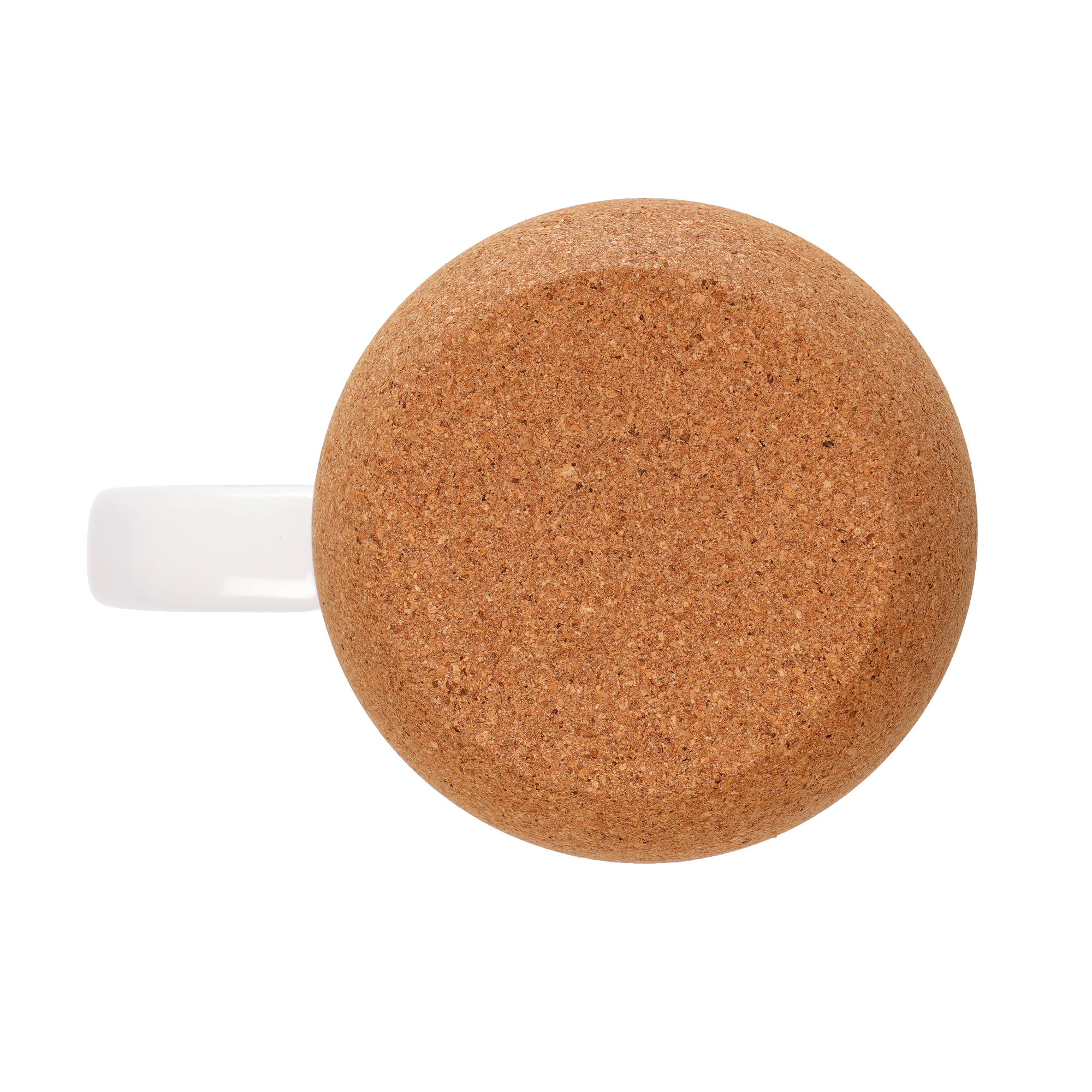 400ml white gloss ceramic mug with naturally insulating cork base, large handle, push-on PP lid with sliding sipper and silicone seal. BPA and PVC free. Designed for TrueVivid™ full colour dye sublimation branding.